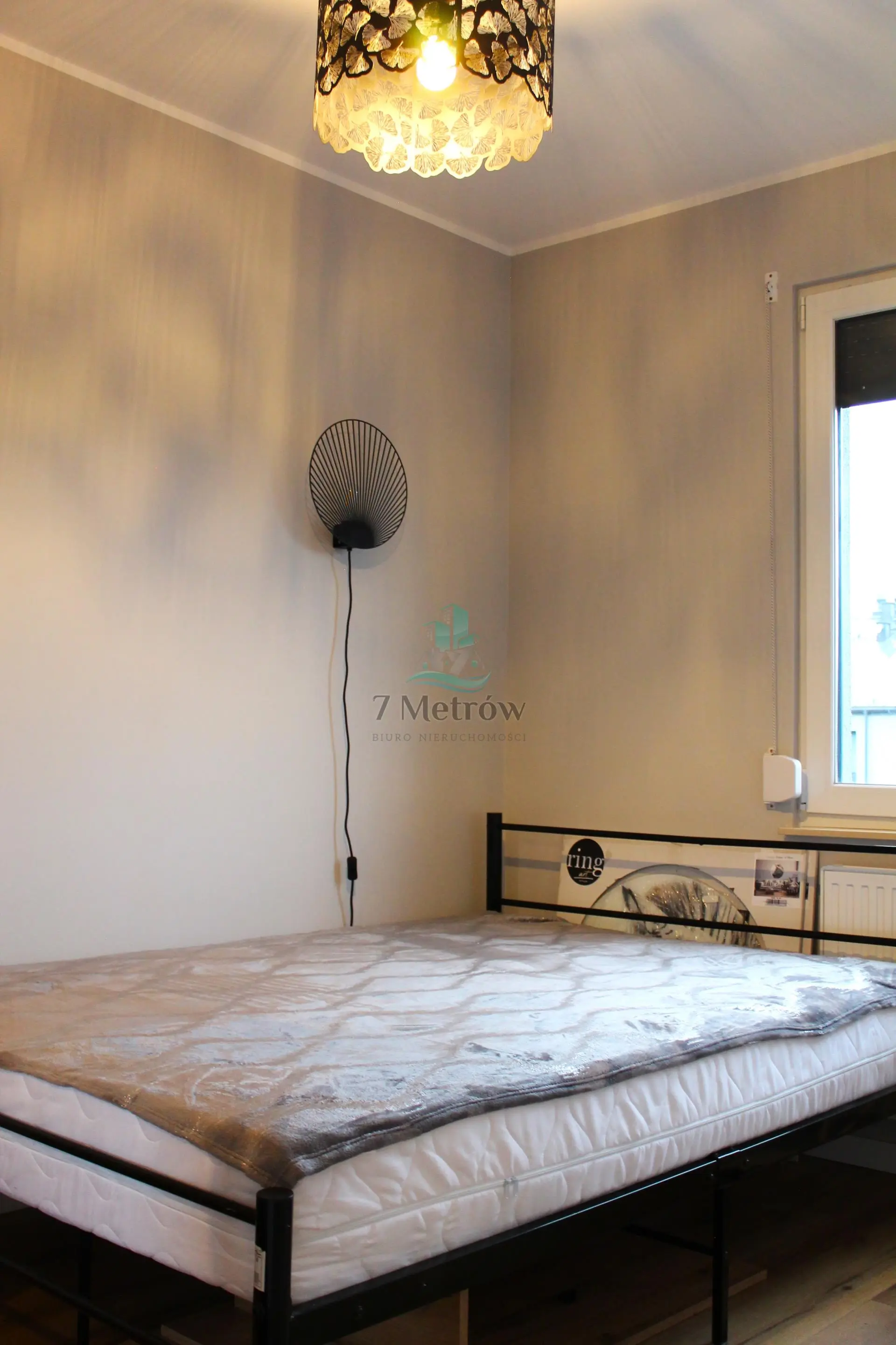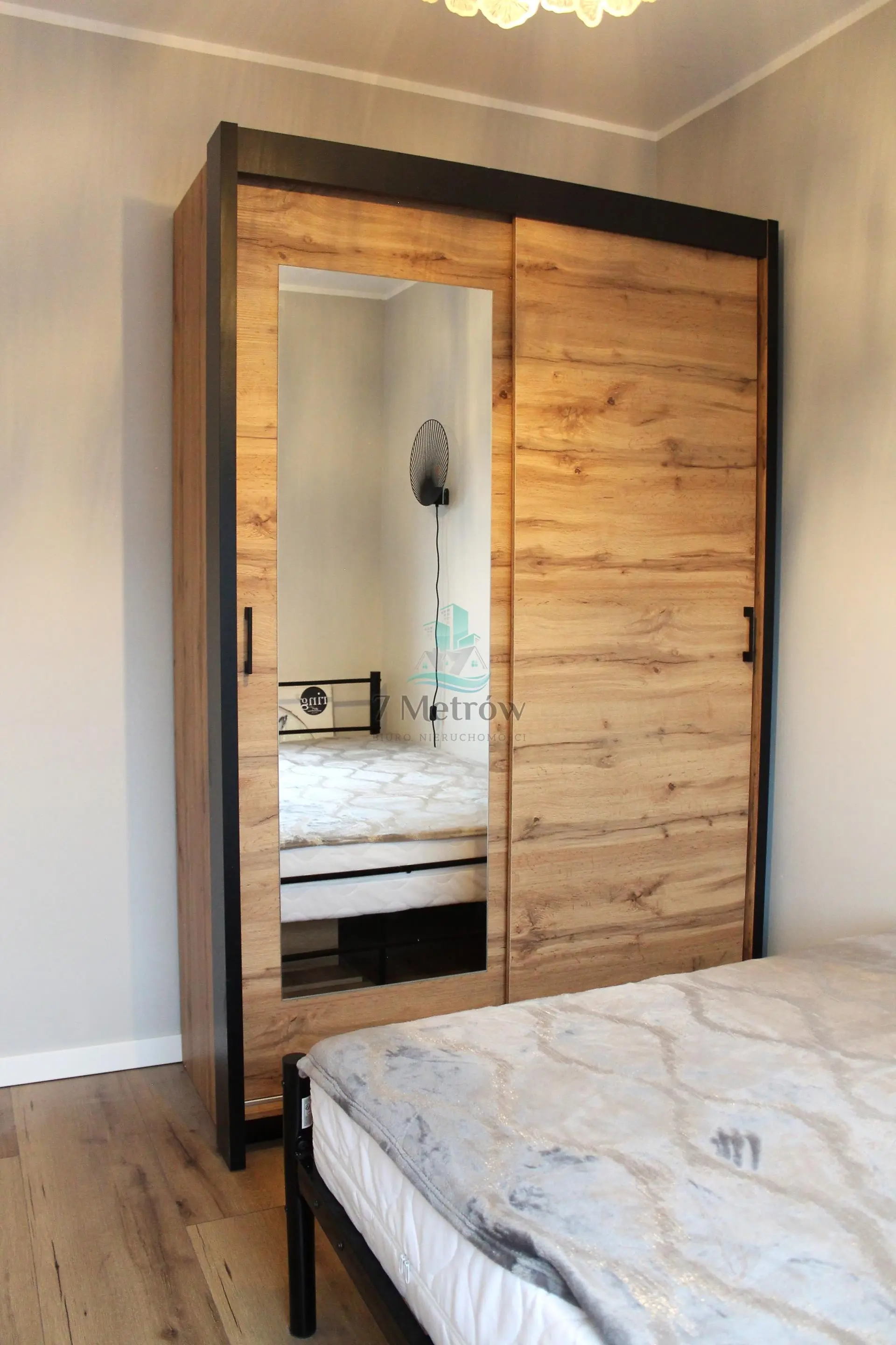 W sypialni jest łóżko oraz pojemna szafa. Lokal wyposażony jest również m.in w (pralkę, odkurzacz, garnki, sztućce, naczynia).