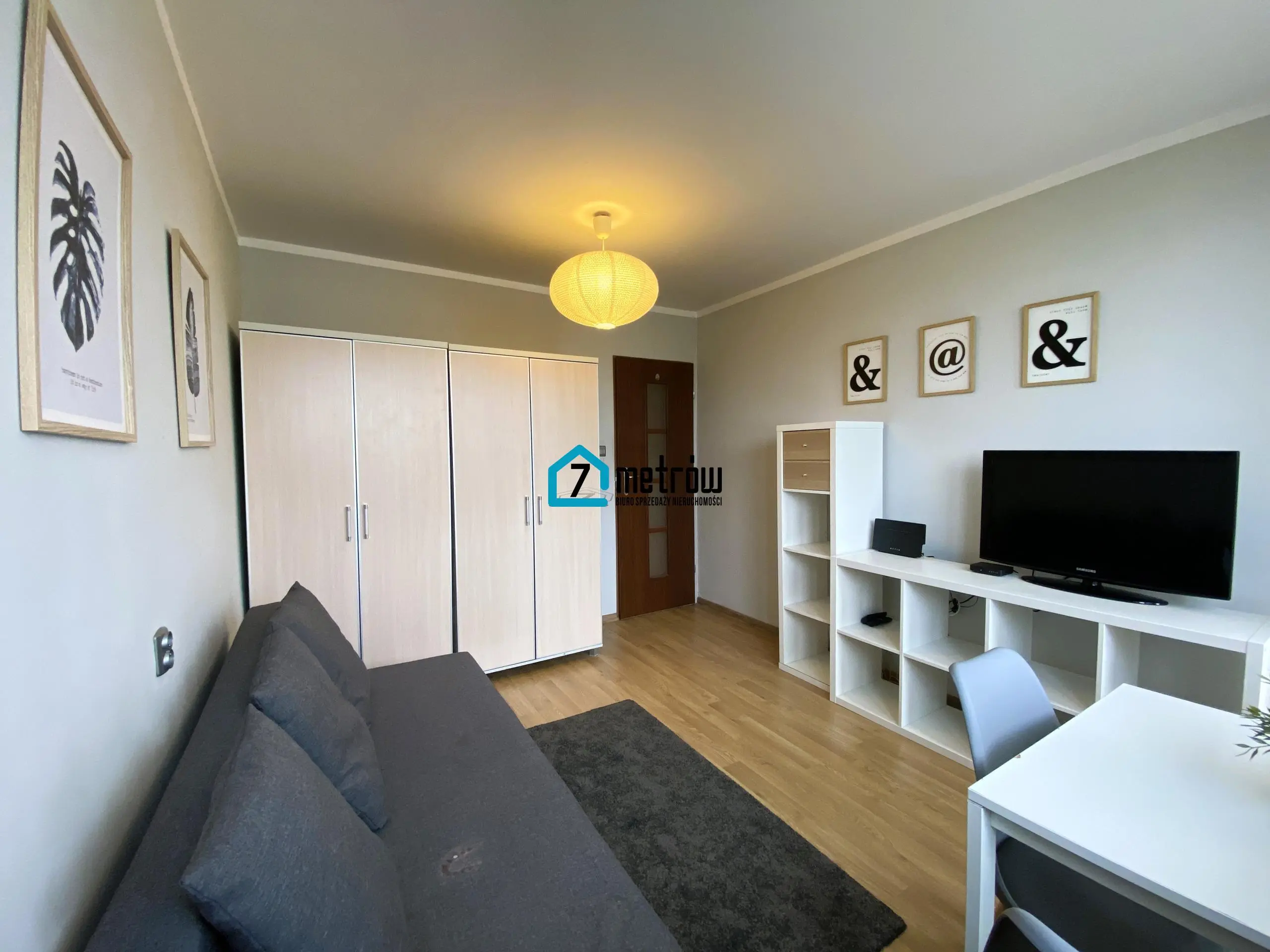 W każdym z pokoi znajduje się łózko, telewizor, szafa, szafka RTV, stolik, krzesła. Kuchnia w zabudowie wraz z całym wyposażeniem (lodówka, kuchnia z piekarnikiem, kuchenka mikrofalowa, okap).