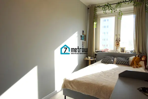 W sypialni jest duże łóżko z wygodnym materacem, komoda oraz szafa w zabudowie. W przedpokoju jest szafa w zabudowie, a w łazience pralka.