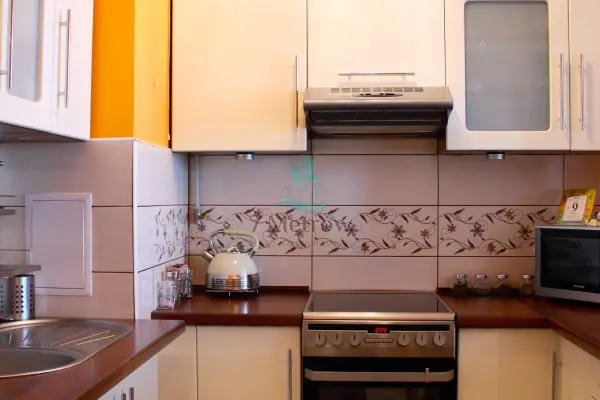 Kuchnia w zabudowie wraz ze wszystkimi sprzętami AGD, wejść i mieszkać.