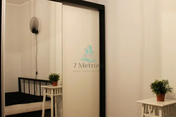 W sypialni jest łóżko oraz pojemna szafa. Lokal wyposażony jest również m.in w (pralkę, odkurzacz, garnki, sztućce, naczynia).