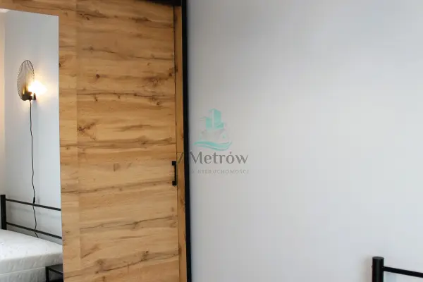 W sypialni jest łóżko oraz pojemna szafa. Lokal wyposażony jest również m.in w (pralkę, odkurzacz, garnki, sztućce, naczynia).